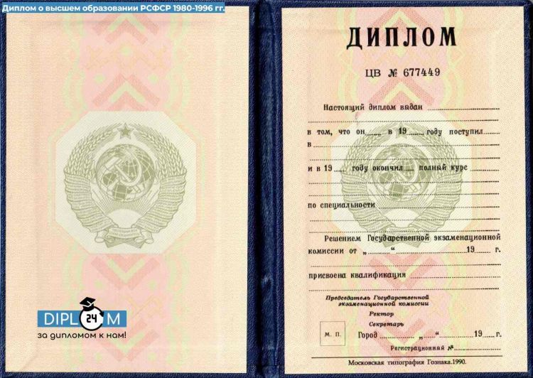 - Комплектация: Синяя корочка, титульный бланк и выписка из зачетной ведомости с оценками
