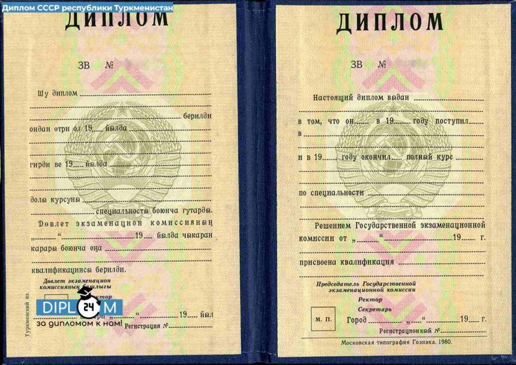 - Диплом СССР о высшем образовании Республики Туркменистан