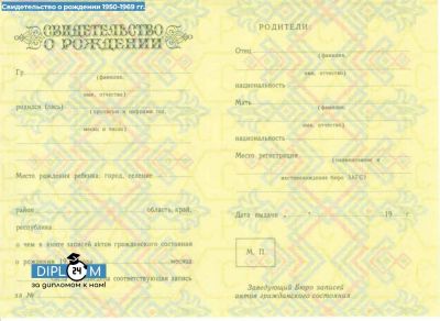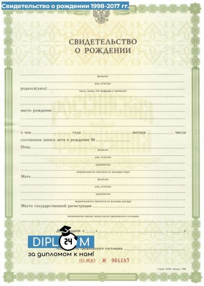 - Комплектация: заполненный бланк свидетельства о рождении с печатями и подписями